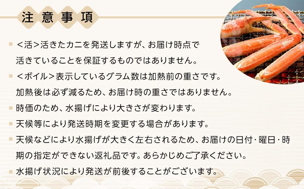 ・<活>活きたカニを発送しますが、お届け時点で活きていることを保証するものではありません。