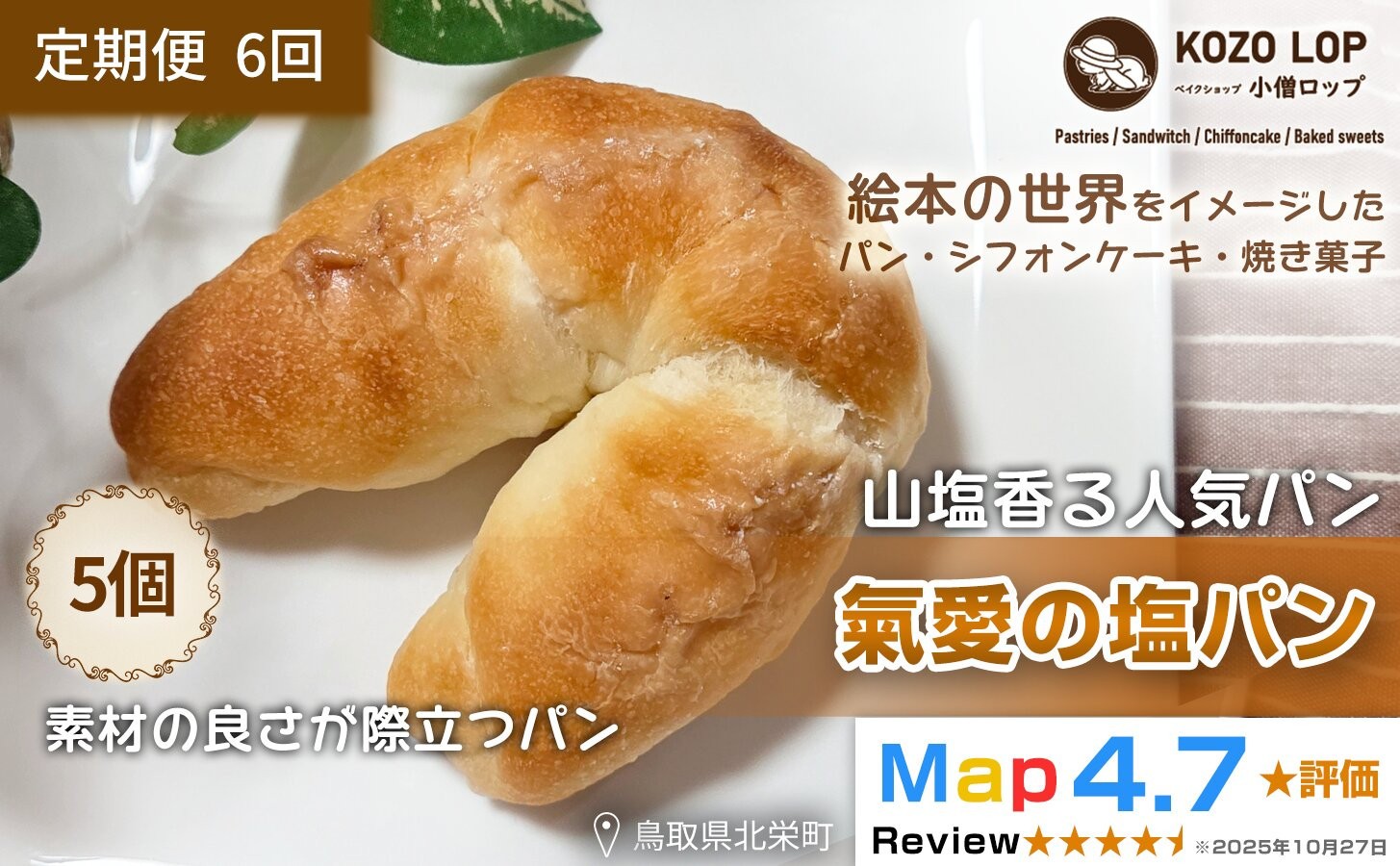 1177.【定期便6ヶ月】山塩香る人気パン 氣愛の塩パン 5個×6回