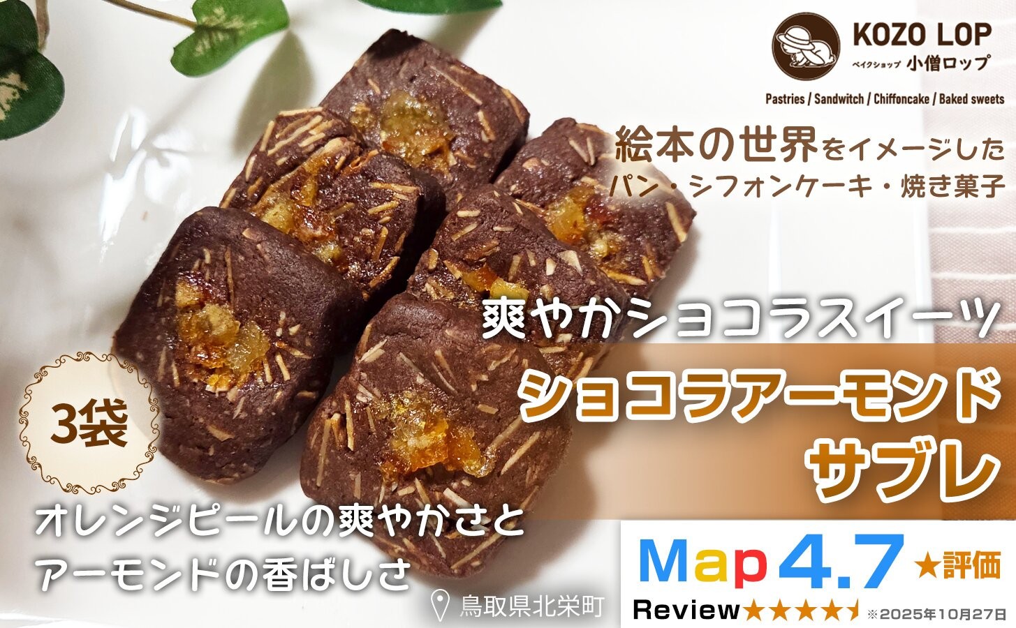 1222.【鳥取県産 爽やかショコラスイーツ】ショコラアーモンドサブレ 3袋