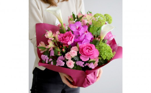 花材はおまかせとなりますが、華やかで印象に残る仕上がりでお作りします。