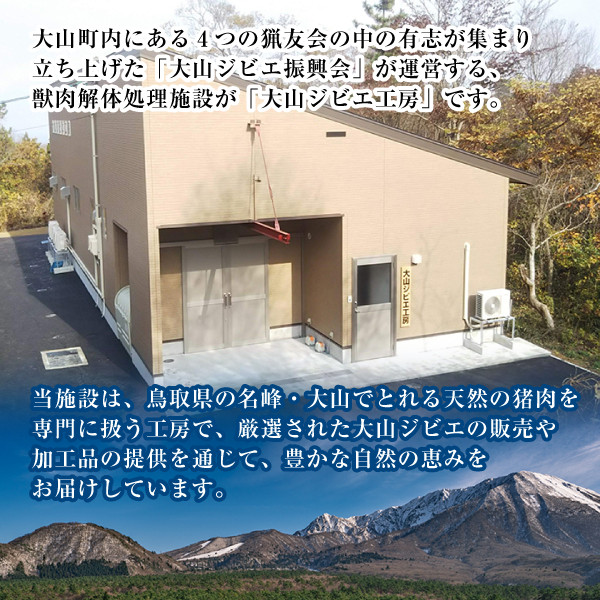 大山町で捕獲したイノシシと大山町産の野菜を詰め込みました。
