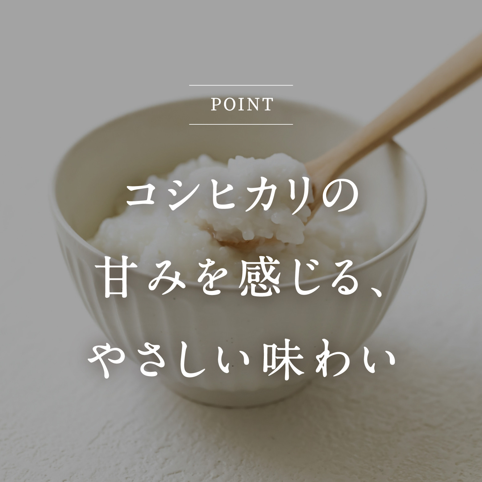 湯せん不要で簡単調理。鳥取県日野町産コシヒカリのお粥です。電子レンジ500Wで1分30秒の簡単調理でお召し上がりいただけます。