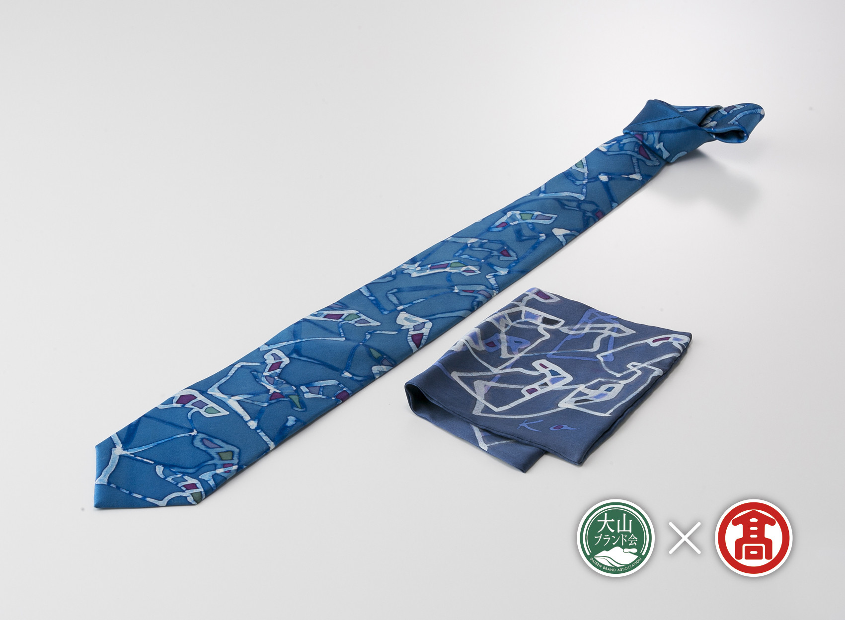 色を染めて、布を染めて、心を染めて 大山友禅染 / シルク / 鴟尾 <手描染アトリエカワハラ>大山友禅染 シルクネクタイ&チーフ(大山ブランド会)95-BC3 0340