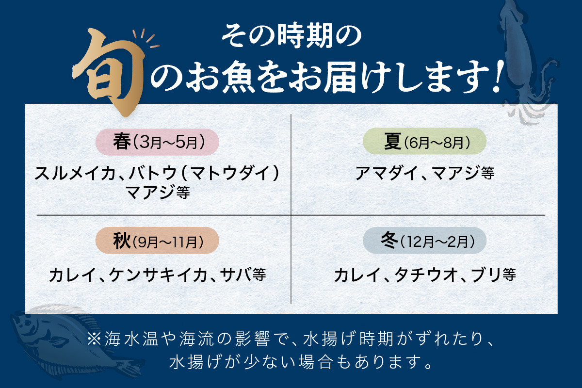 魚 鮮魚 福袋 イカ 烏賊 マトウダイ アジ 真あじ 甘鯛 アマダイ カレイ 剣先イカ 鯖 さば 太刀魚 タチウオ ブリ 鰤 お任せ 詰め合わせ セット 旬 直送便