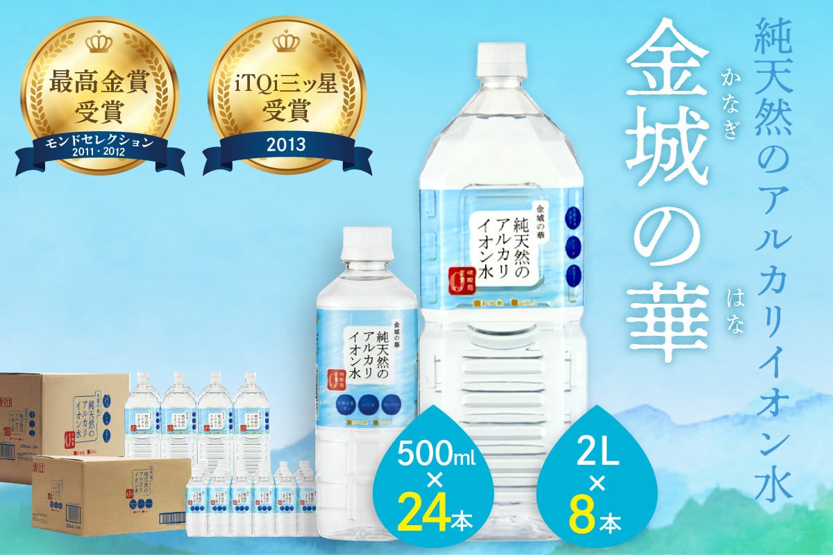 チョイスPayポイントと交換できる品 島根県の大自然が生み出した、非加熱・pH8.2の弱アルカリ天然水。 ミネラルウォーター 金城の華 500ml 2L 各一箱 水 ミネラルウォーター ペットボトル 天然水 アルカリイオン 水 【043_1831】