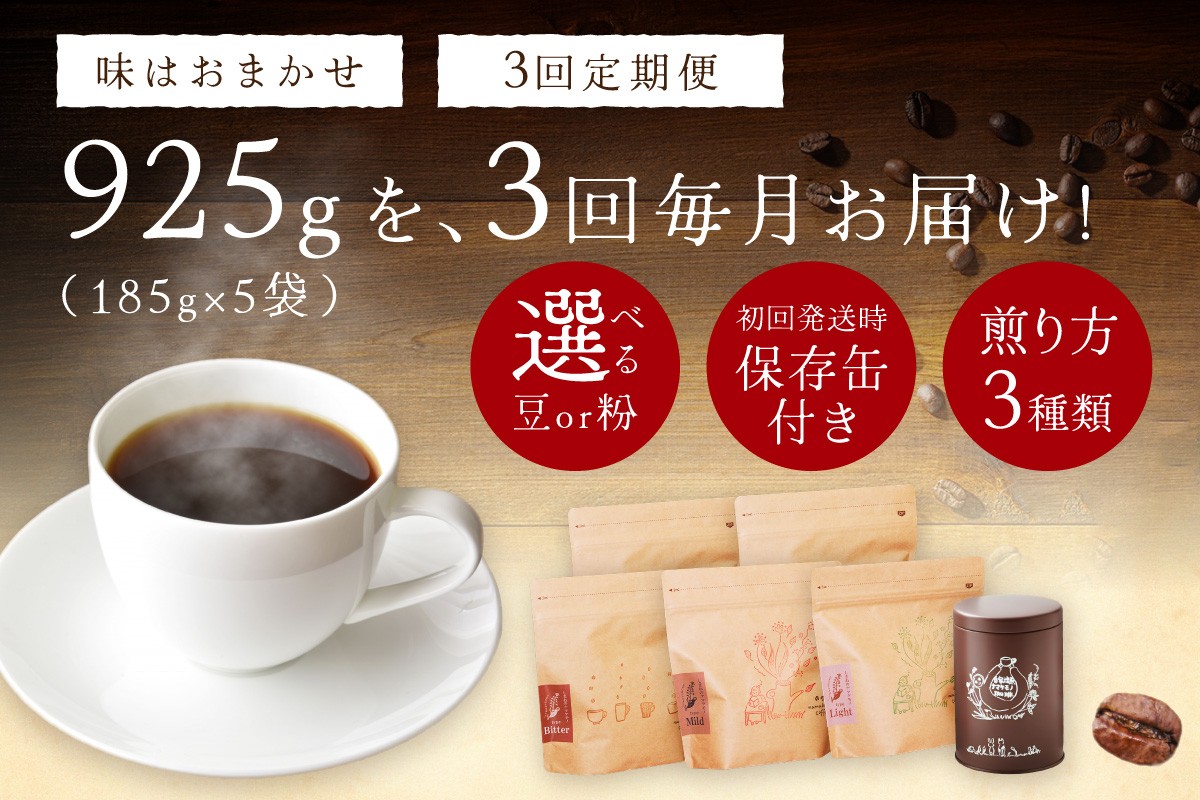 スローな浜田で焙煎をした珈琲(925g×3回の定期便) 定期便 3回 コーヒー コース 定期便 ドリップ 自家焙煎 こだわり バレンタイン ホワイトデー 豆 粉 自家焙煎【023_1927】