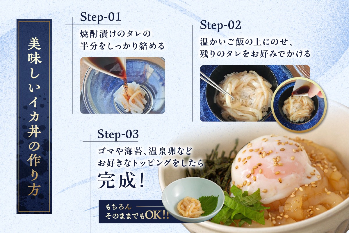 チョイスPayポイントと交換できる品 イカ本来の味をお楽しみください 料亭の秘伝の味 白いか(剣先イカ)焼酎漬け丼 魚介類 魚貝類 イカ 剣先イカ 漬け丼 焼酎漬け丼 料亭の味 おうちごはん お手軽 本格 簡単調理 【087_1736】