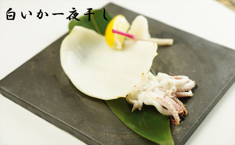 山陰地方名産の白いかの標準和名はケンサキイカです。地域によって「まいか」、「けんさき」、「やりいか」、「赤いか」などとも呼ばれています。お届けします「白いか一夜干し」は、山陰沖であけぼの丸が漁獲した白いかを、浜の匠が水揚げ後ただちに薄塩味で独自の製法でていねいに一夜干しにしたものです。イカは低カロリー、低脂肪、高タンパク質の食材です。さらにイカには血液中のコレステロール値を下げ、成人病予防効果のあるタウリンやEPA、DHAなども含まれています。疲労回復、視力回復にも効果があると言われています。健康にも良い美味しさを是非お楽しみ下さい。