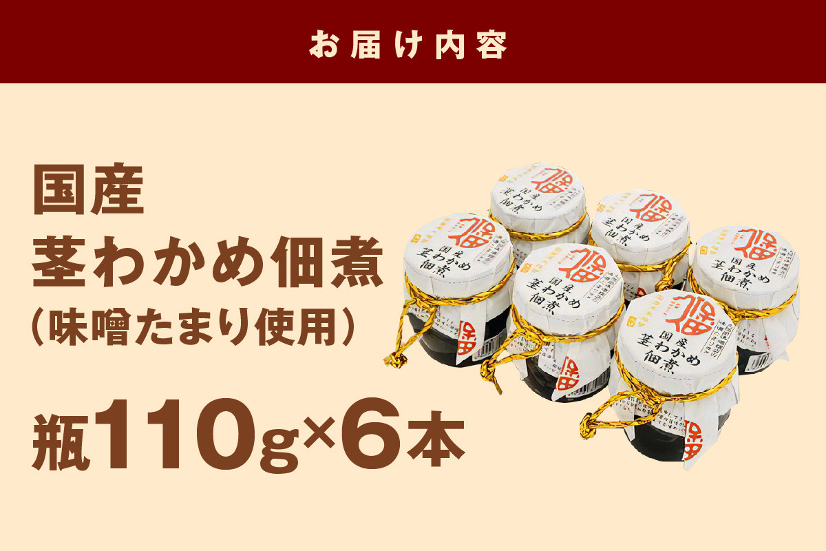 チョイスPayポイントと交換できる品 旨い まってました 国産茎わかめ もちもち食感 ふっくら炊き上がり 大人気!ご飯のお供 国産茎わかめ佃煮 瓶110g×6本(味噌たまり使用) 国産 茎わかめ 佃煮 瓶 味噌たまり 6本 セット 【094_1890】