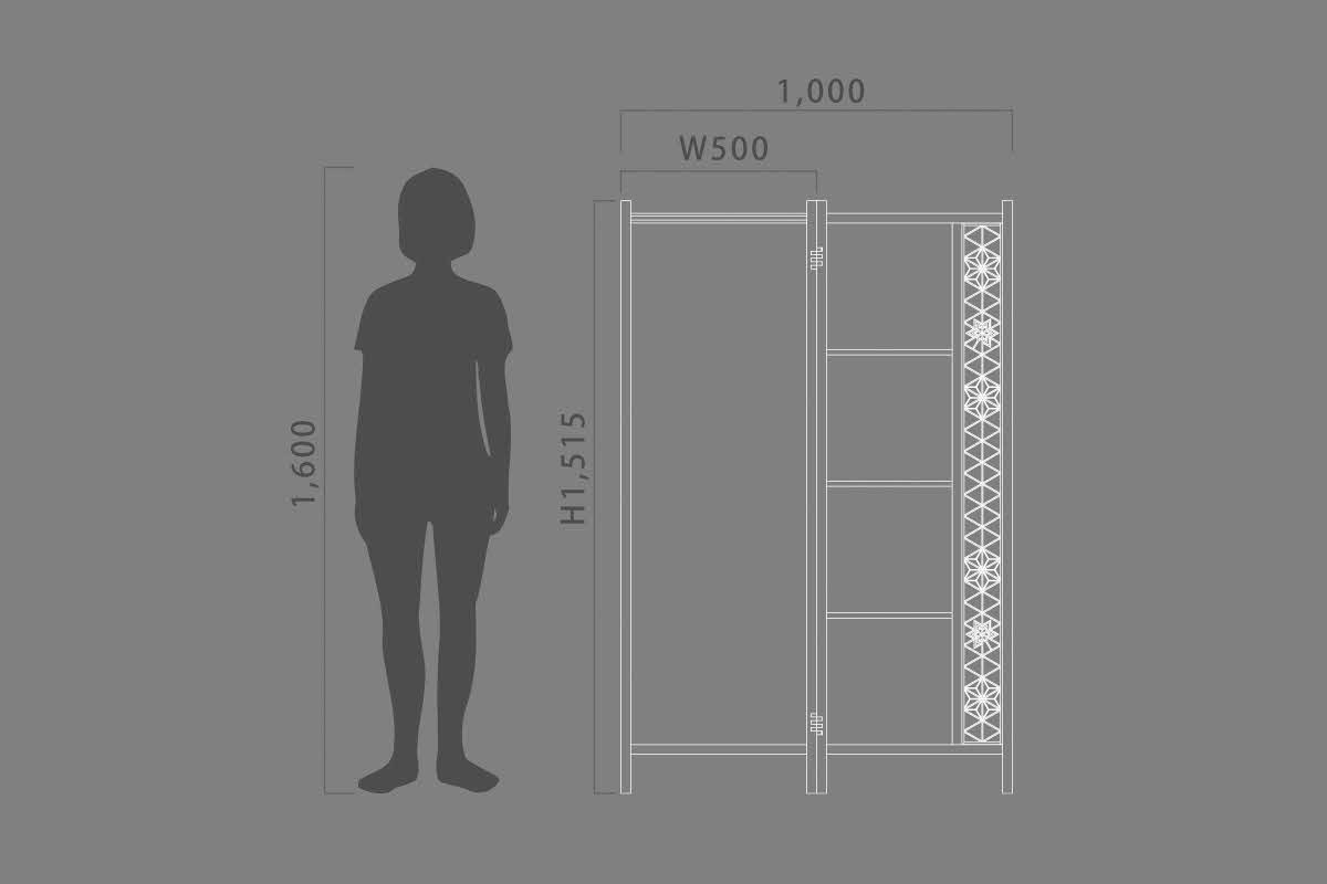 | 容量 | 寸 法:W500×H1515×D60(mm) 材 質:国産栗(フレーム)/ ウォルナット(バー) 仕 様:2連衝立 紐蝶番・折り畳み収納可能 紋 様:もみじ / 麻の葉 ※オイル系クリアー塗装仕上げ(手垢止め) |