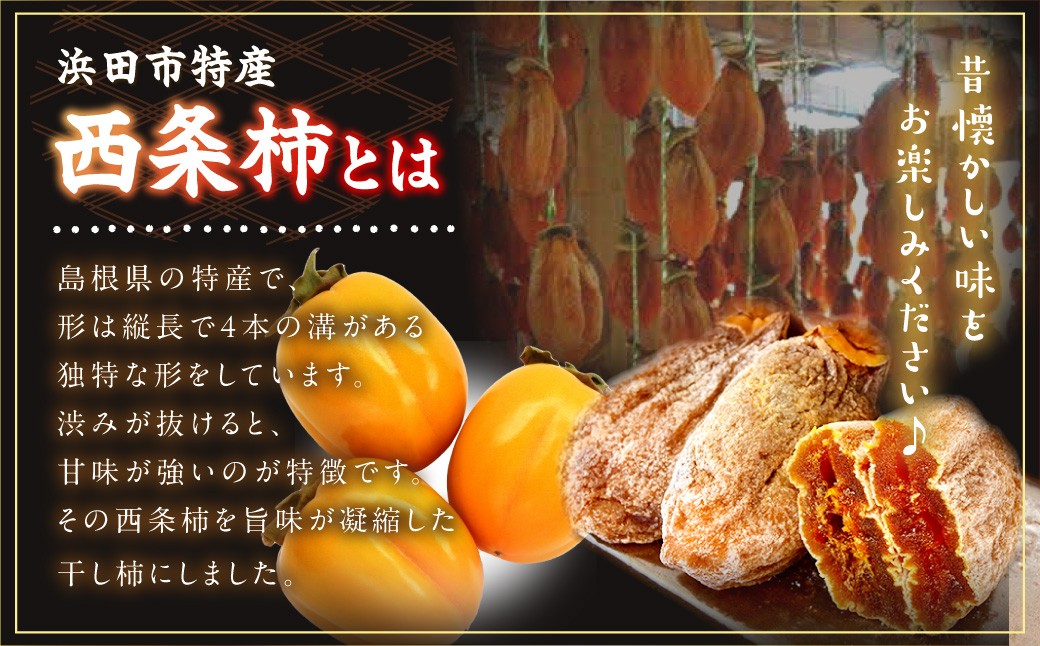 浜田市の特産果樹「西条柿」を使用した干し柿を、1kgの大ボリュームでお届けいたします。