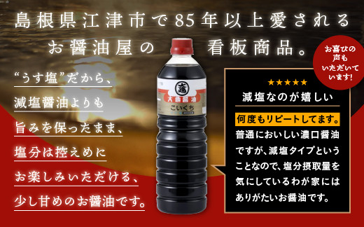 島根県 江津市 島根 江津 大亀醤油 国産 醤油 お醤油 しょうゆ しょう油 濃口うす塩 濃口うす塩醤油 濃口 万能 減塩25% 旨味 大豆 調味料 煮物 料理 調理 食べ物 色々な料理に ギフト プレゼント