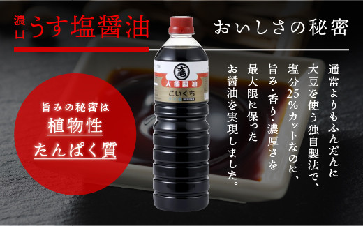 大亀醤油 濃口うす塩醤油 1L×2本セット(計2L)【YS-14】|送料無…