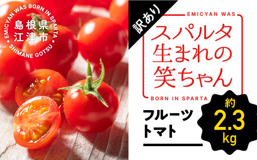 | 容量 | 訳あり スパルタ生まれの笑ちゃん(フルーツトマト)約2.3kg 産地:島根県江津市 |