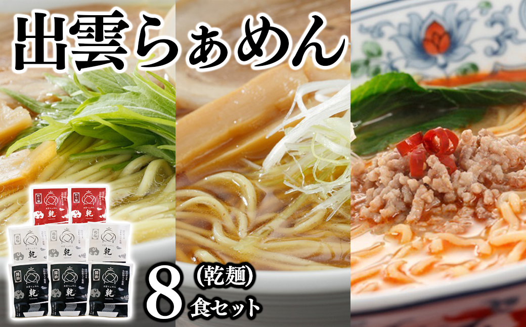 添加物不使用のノンフライ中華めん 出雲らぁめん「乾」 麺匠たかはし こだわり出雲らぁめん 8食セット(乾麺)【島根県 雲南市 塩 醤油 担々麺 オロチの爪 とうがらし 唐辛子 拉麺 ラーメン 特産 ご当地 セット】