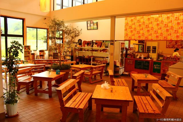 道の駅頓原にあるカフェ「ラムネmilk堂」。緑に囲まれてゆっくりと過ごせる場所です。道の駅に立ち寄られた方はもちろん、町の人々にとっても憩いの場となっています。