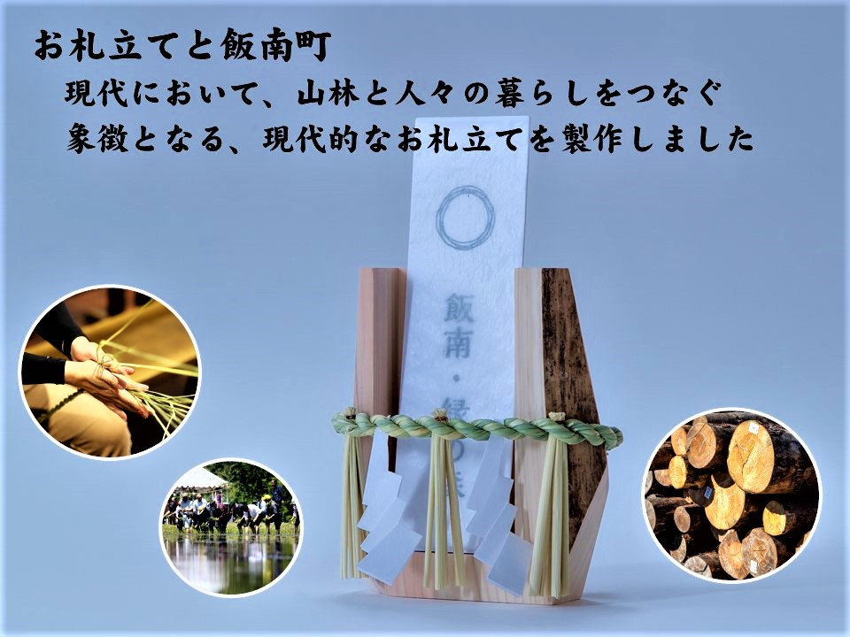 山林に多く育てられているヒノキで作られた『お札立て』が合わさって、このお札立てが出来上がりました。