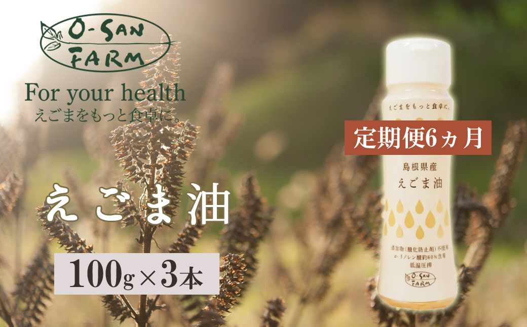 160175【酸化しにくいハクリボトル/えごま油定期便】毎日摂取!えごま油(毎月3本(1本100g)/6ヵ月継続)