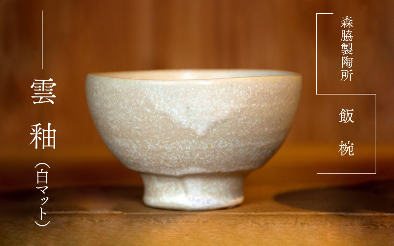 茶碗 器 湯吞 焼き物 陶器 森脇靖 森脇製陶所 飯椀 : 雲釉(白マット)