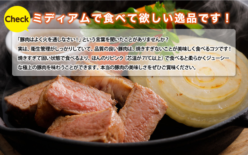 焼きすぎて固い状態で食べるより、ほんのりピンク(芯温が71℃以上)で食べると柔らかくジューシーな極上の豚肉を味わうことができます。本当の豚肉の美味しさをぜひご賞味ください。