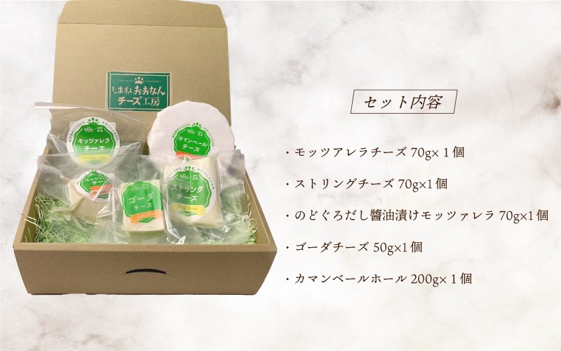 チーズ 国産チーズ 熟成チーズ 島根 おつまみ ワイン 酒 ナチュラルチーズ5種詰合せ(モッツァレラ2種・ストリング・ゴーダ・カマンベール)
