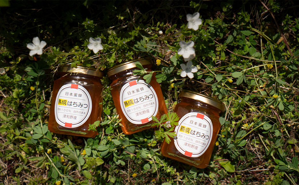 ホンダショップの蜂蜜は、百花蜂蜜。津和野町に咲くさまざまな種類の木々や野に咲く花からミツバチが集めてきた蜜で、味は複雑で濃厚。しかも採取する年や時期によって味わいが微妙に異なるのも、百花はちみつの楽しみのひとつです。