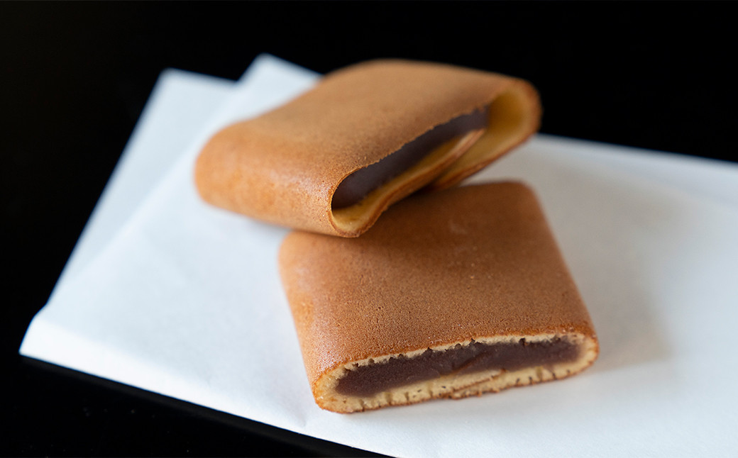 島根県下で栗の生産量一位を誇る津和野町。ほくほくとした味わいの香り高い大きな栗を甘露煮にし、つぶあんの中にふんだんに入れ、虎焼と呼ばれる焼き皮のカステラ生地ではさんだ、華やかな和菓子です。