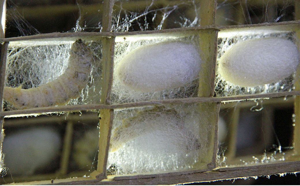 ですので、化学物質も一切使用していない桑の葉を食べて育った蚕で、その蚕がつくった繭です。無臭です。