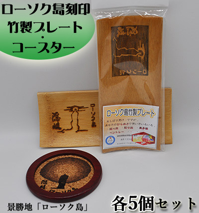 竹製プレートと、コースターに、隠岐の島町を代表する景勝地「ローソク島」を刻印しました。手作業で、丁寧に製作しております。