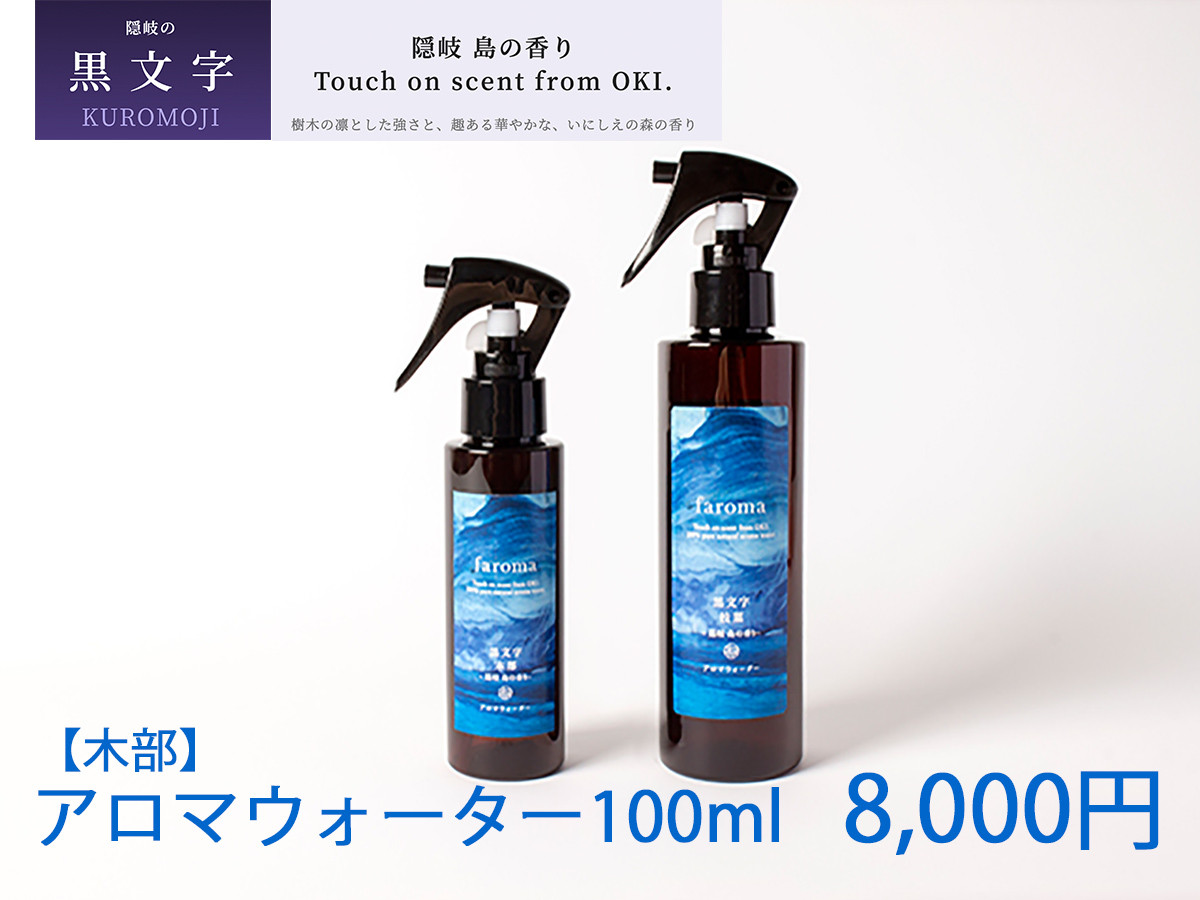 『隠岐の島町東郷宮田蒸留所』にて、隠岐の島に自生する黒文字から丁寧に抽出した、100%天然成分のアロマウォーターです。