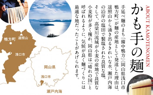 岡山県産小麦粉のみを使用し、伝統の手延べ製法にひと手間を加え、独特の食感を実現しました。