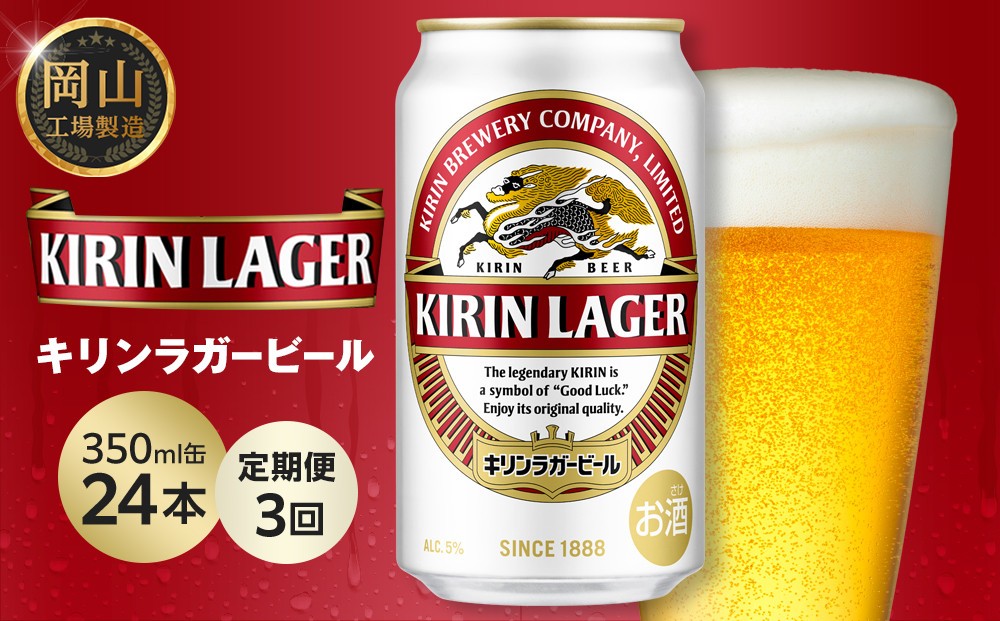 【定期便3回】キリン ラガービール 350ml 缶 × 24本 <岡山市工場産> | キリンビール ラガー お酒 ビール 麦酒 アルコール 飲料 晩酌 飲み会 宅飲み 家飲み 宴会 ケース ギフト