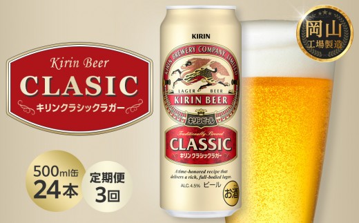 【定期便3回】キリン クラシックラガー 500ml 缶 × 24本 <岡山…