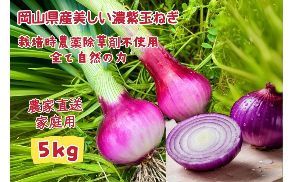 甘すぎ新鮮岡山市産 赤紫玉ねぎ5kg家庭用 減化学肥料 タマネギ 生食 健康 野菜 食品 栽培期間中農薬・除草剤不使用自然の力健康野菜 訳あり(サイズ混合)
