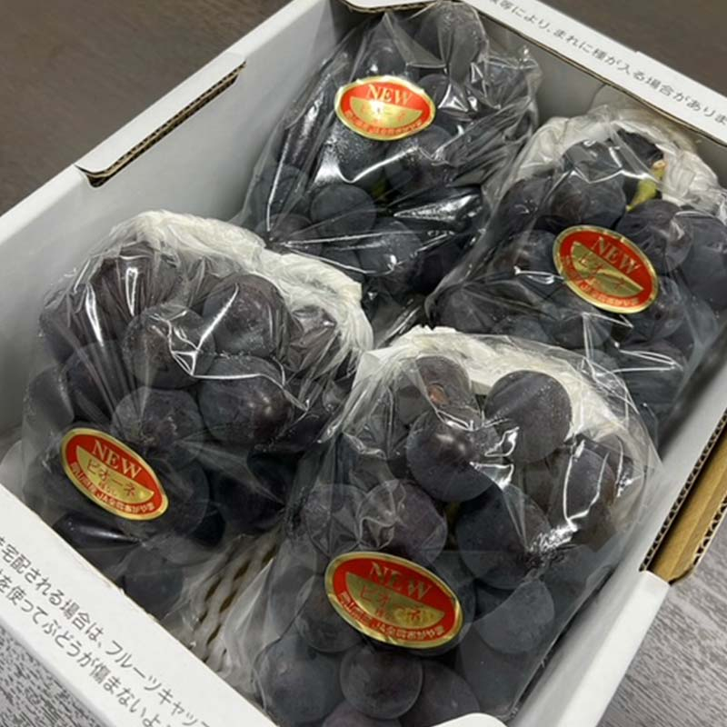 「ニューピオーネ」は巨峰とカノンホールマスカットとの交配をして実生育成したぶどうです。 「ピオーネ」という名前の由来は、イタリア語で開拓者という意味の「パイオニア」から名付けられました。 食べ応え抜群の大粒、芳醇であふれるほどの甘い果汁と16度以上の高い糖度、わずかな酸味とのバランス。 種なしで皮離れが良いから食べやすく大人気の品種です。 ■注意事項/その他 ・生物ですので、なるべく早めにお召し上がり下さい。 ・その日の入荷量等により発送予定日が多少前後する場合がございます。あらかじめご了承下さい。 ・クール便でお届け致します。 ・粒の大きさ多少異なる場合がございます。 ・果実の大きさ(房数)をご指定いただくことはできません。 ・本品は箱毎に検品を行い、梱包の際は細心の注意を払い出荷致しますが、配送中の振動等の原因で若干のキズ等が入る場合がありますので、誠に恐縮ではございますがご理解の上、ご依頼いただきますようお願い致します。 ・画像はイメージです。