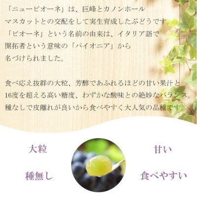 「ピオーネ」という名前の由来は、イタリア語で開拓者という意味の「パイオニア」から名付けられました。