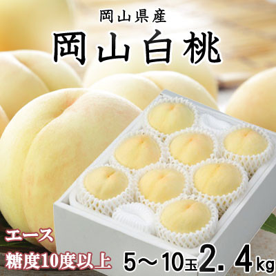 <先行受付>岡山白桃 エース 5~10玉 2.4kg 岡山県産_桃 白桃 …