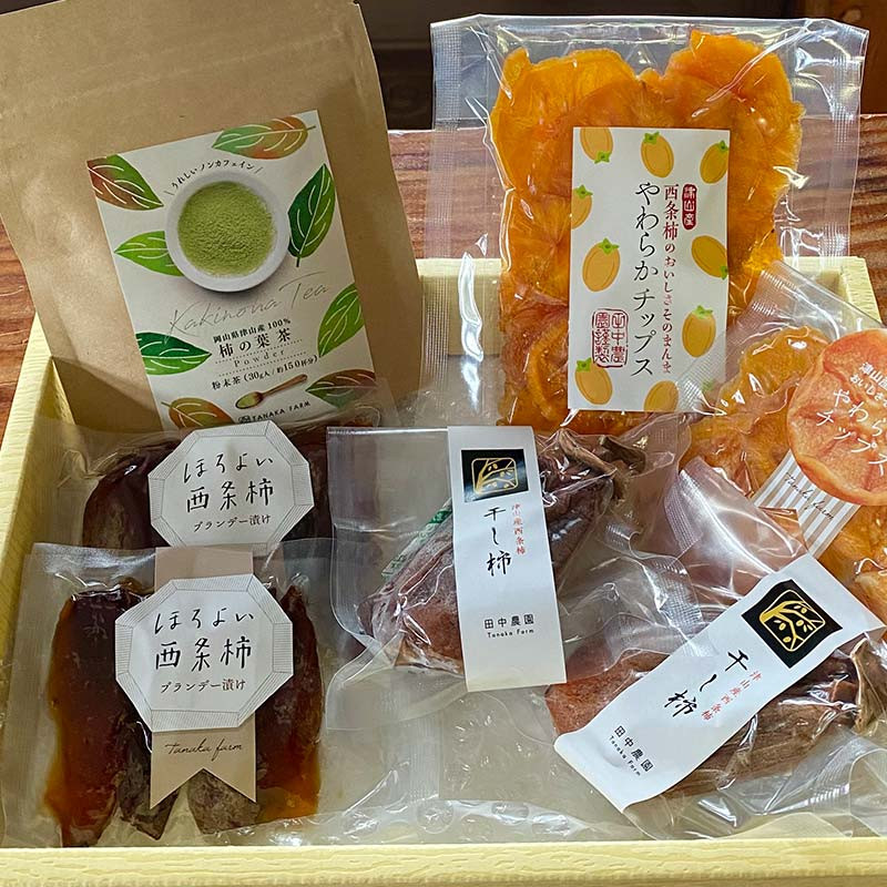 岡山県津山市産「西条柿」柿づくしセット(4種類・7個入り)_種なし柿 干し柿 食べ比べ 秋の果物セット セット 柿の葉茶 ほし柿 干柿 柿 かき 茶葉 ドライフルーツ 果物 くだもの フルーツ 国産 岡山県 津山市 ギフト プレゼント 送料無料【1418882】