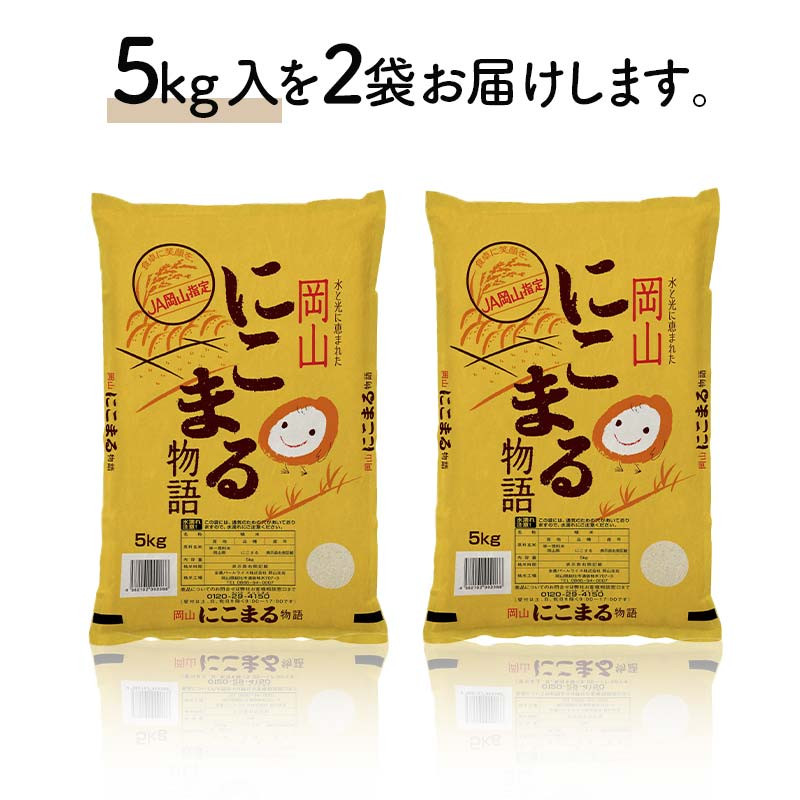 | 容量 | ■お礼品の内容について ・岡山県産にこまる[10kg(各5kg×2袋)] 原産地:岡山県 ■原材料・成分 精米 |