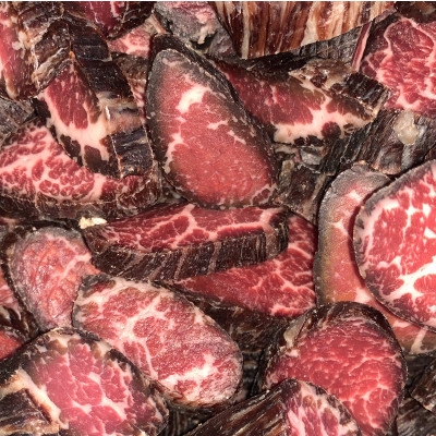 牛肉、塩、太陽、自然の風にこだわり、お肉の乾燥器など使用せず、余分な物は何も足さない、お肉本来の旨味をギュッと凝縮した当店自慢の天日の干し肉です。