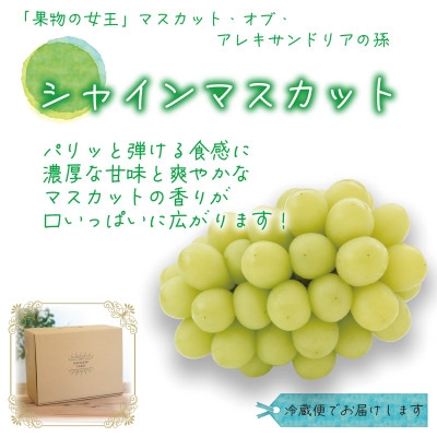 このお礼品は、花笑み農園の甘くて香り高いシャインマスカットのご家庭用を3~5房入りでお届けいたします。