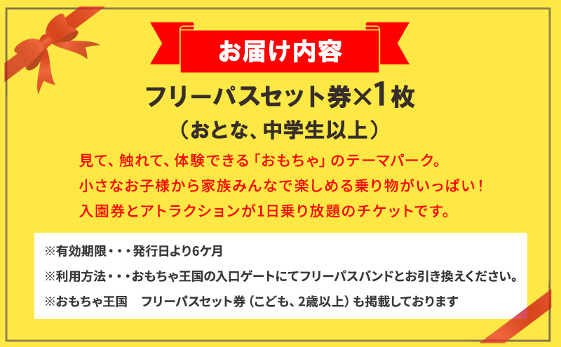 おもちゃ 王国 フリーパス セット 券 (おとな、中学生以上) 入場券 チケット