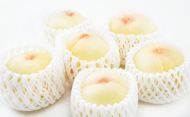 白桃はその名の通り、白い果皮が最大の特徴。真っ白に仕上げることで上品な甘みと香り、とろけるような柔らかさを生み出しています。透き通るように白く、果汁滴るきめ細やかな口あたりで一度食べると直ぐにまた食べたくなる忘れられない味です。