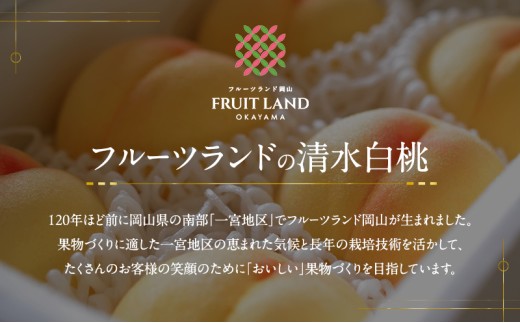 岡山県内多くの場所で栽培されている清水白桃ですが、フルーツランド岡山では実際に栽培を行っているからこそできる一貫した栽培体制・商品管理体制と長年の試行錯誤で培った目利きでこだわりを詰め込んだ「本物の味」を皆様へお届けさせていただきます!