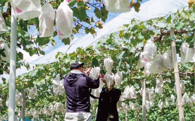 ぶどうの名産地・岡山県は、雨が少なく、また日も長い、 温暖な気候に恵まれた土地です。なかでも真庭市は豊かな自然に囲まれた広大で肥沃な土地にあり、県北特有の寒暖差により甘く美味しいぶどう作りに適しています。「ここのぶどうは特に甘い」色々なぶどうを食べ比べてきたお客様からいただいたお言葉です。