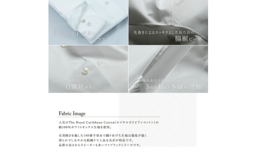 人気のThe Royal Caribbean Cotton(ロイヤルカリビアンコットン)の綿100%ホワイトオックス生地を使用。