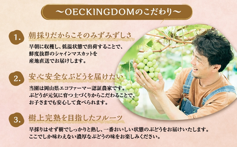 岡山県より朝採り濃厚シャインマスカットとおまかせ2品種のぶどうをお届けいたします。