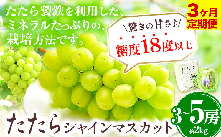 チョイスPayポイントと交換できる品 穫れたてのブドウを発送! 【先行予約】 【3回定期便】マスカット シャインマスカット 3~5房(約2kg)《2026年8月下旬-10月下旬頃出荷予定》たたらみねらる ギフト 糖度18度以上 フルーツ 種無し ぶどう 葡 Y&G.ディストリビューター 岡山県 笠岡市 定期便