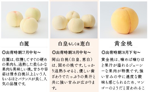 【先行予約】堅めの果肉でしっかりとした食感の【晩生種】♪(白麗、瀬戸内白桃など)