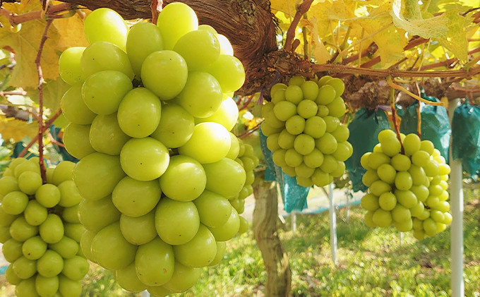 シャインマスカットは肉質は硬く、芳醇な香りと味わい、種がなく皮ごと食べられる貴重なぶどう。